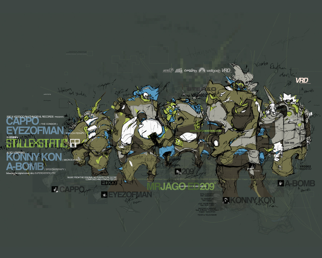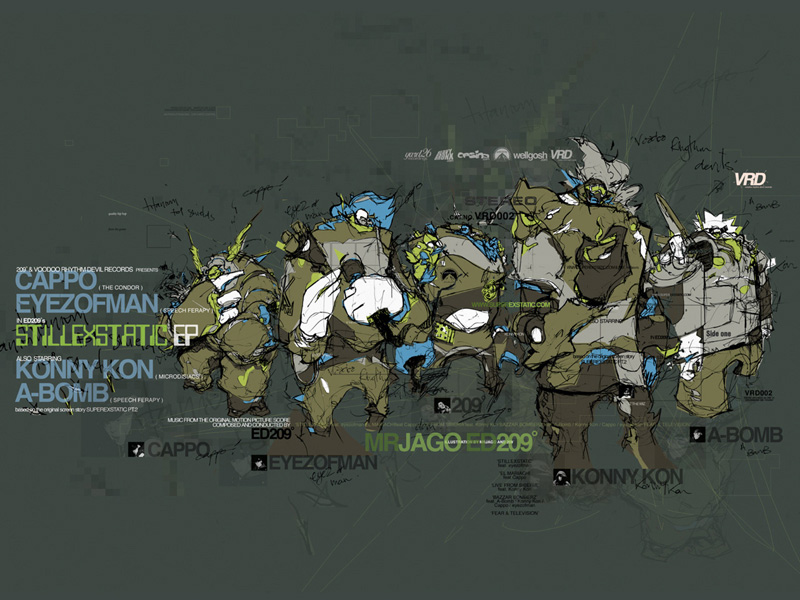 The poster graphic for the STILLEXSTATIC EP is the first of a series of wallpapers you can download for your mac or pc. Click on the link below to dowload the current wallpaper and check back soon for more. - STILLEXSTATIC WALLPAPER 1280 x 1024 - STILLEXSTATIC WALLPAPER 800 x 600 - SUPEREXSTATIC WALLPAPER 1280 x 1024 - SUPEREXSTATIC WALLPAPER 800 x 600 ( mac people - hold down the ALT key and click to download ) |
